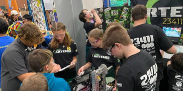 Students in 7th & 8th grade at Traverse City West Middle School & TCAPS Montessori are able to compete on a FIRST Robotics "FIRST® Technical Challenge" (FTC) team, which the TC Titans high school team, alongside parents and community volunteers, helps mentor. The team meets twice a week from September through early December.